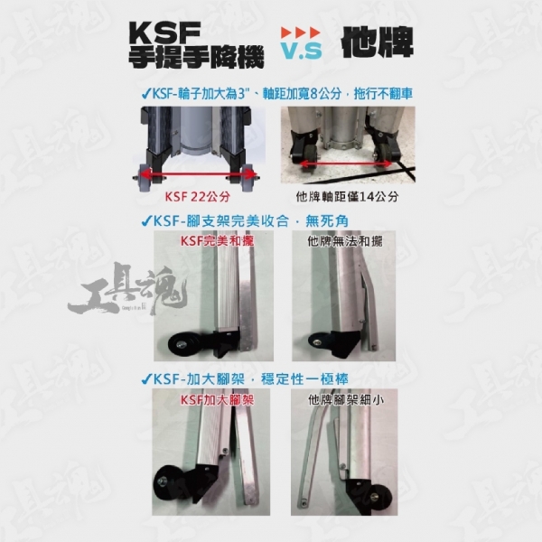 • 拖行輪加大3"、軸距加寬8公分,拖行不翻車不卡死