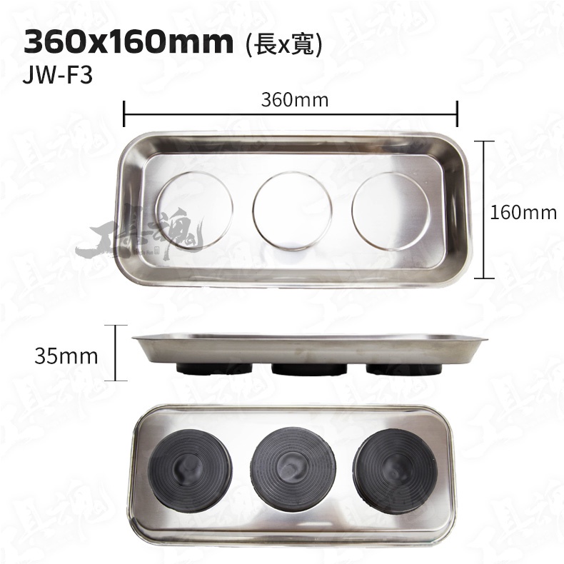 【商品規格】 【92*64mm】JW-F1 尺寸(長*寬*高):92*64*25mm 材質:不鏽鋼 盤深度:26mm 厚度:0.5mm 淨重:150g 【235*136mm】JW-F2 尺寸(長*寬*高):235*136*40mm 材質:不鏽鋼 盤深度:42mm 厚度:0.5mm 淨重:760g 【360*160mm】JW-F3 尺寸(長*寬*高):360*160*35mm 材質:不鏽鋼 盤深度:38mm 厚度:0.7mm 淨重:1150g 【290*270mm】JW-F4 尺寸(長*寬*高):290*270*36mm 材質:不鏽鋼 盤深度:42mm 厚度:1.0mm 淨重:1350g