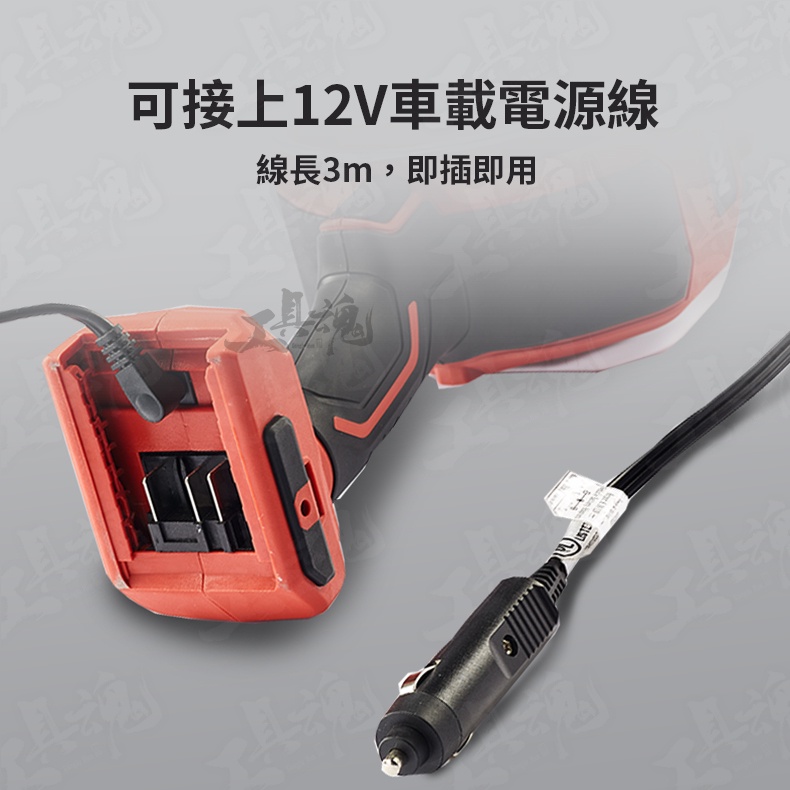 ✓12V點菸器充電、20V鋰電池,雙電源供應