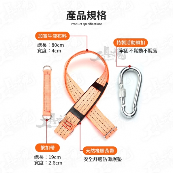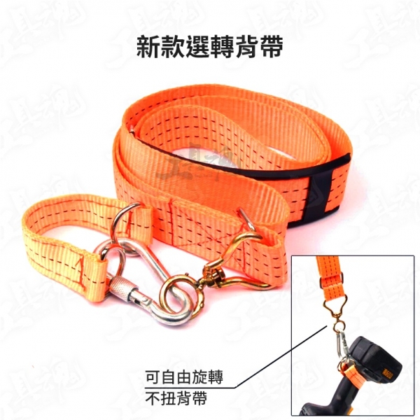 ◆電動工具萬用背帶,不限任何廠牌與電動扳手機型皆能使用 ◆自由旋轉扣帶設計,不扭背帶好方便 ◆加寬背帶,背久不易造成肩痠背痛 ◆登山扣扣環,牢固不易掉落 【雙股總長】約80cm / 寬40mm 【繫帶扣尺寸】19*2.6cm