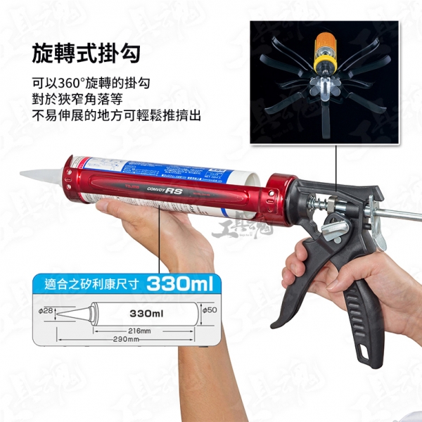 ‧採用可以自由操縱噴頭的旋轉式握柄