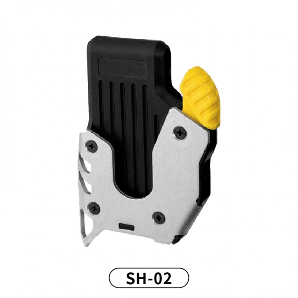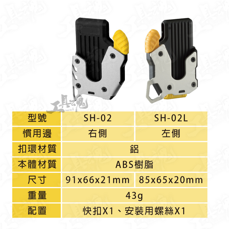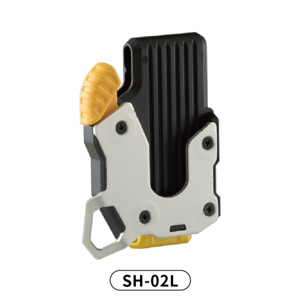 基座下方黃色扣環扳開即可安裝於腰帶上