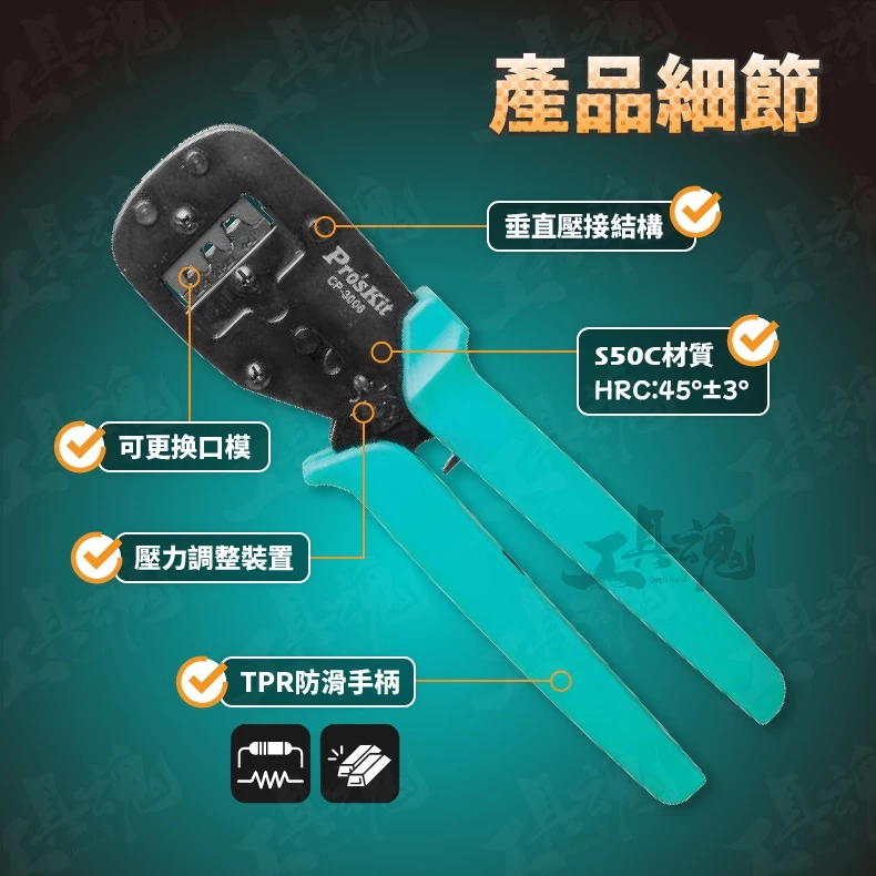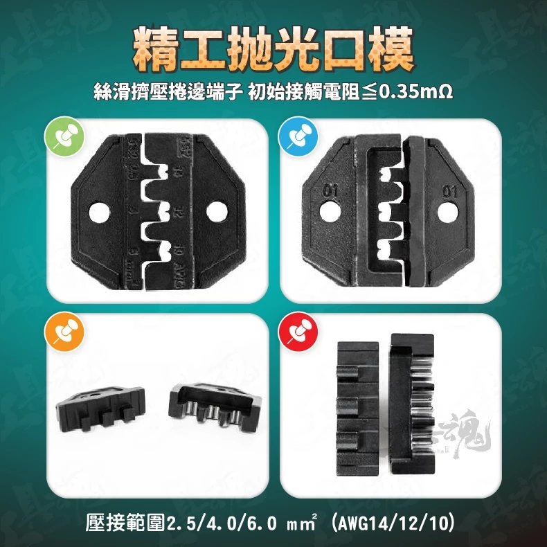 ☑️特殊垂直壓接結構設計,口模壓接更精準,不會產生毛邊