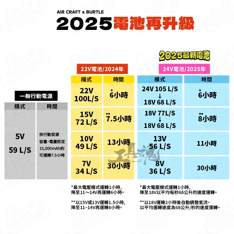 ・2025最新款電池最大輸出變24V!風量增加到每秒105公升!
