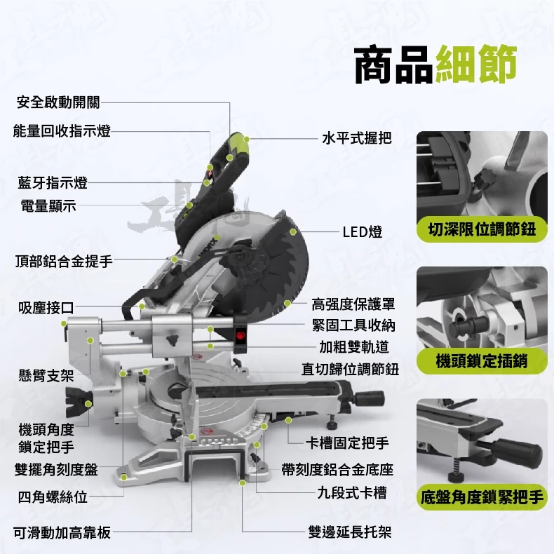 ● 精鋼雙軌推拉臂 切割行程拓展至300mm