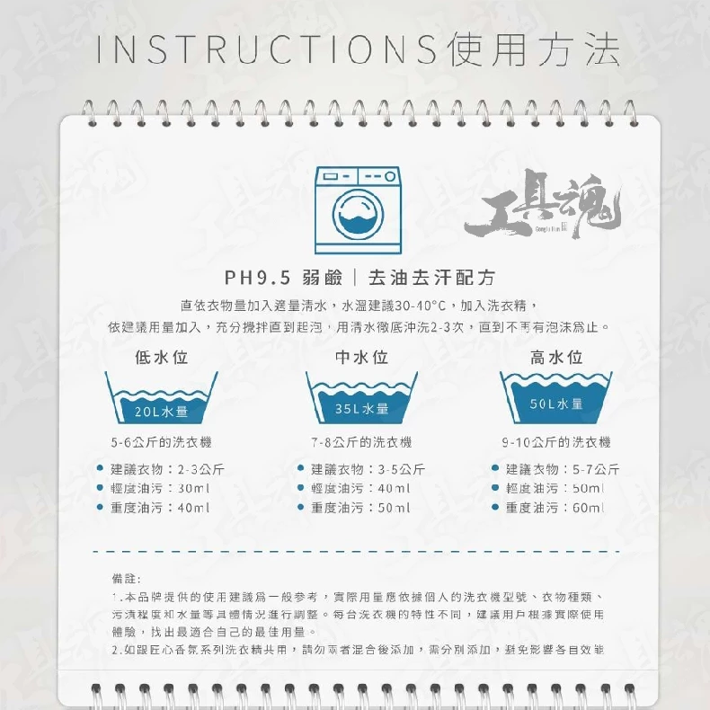 3.適用於高油污衣物,如餐飲、機修、工地工作服等。
