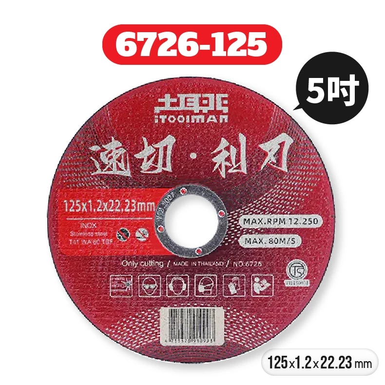 尺寸:直徑125mm x 厚度1.2mm x 孔徑22.23mm