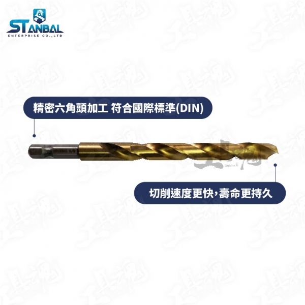 史丹堡- 【單支】一體泰鑽鍍鈦鑽 1.5-6.5mm 台灣製 史丹堡 六角頭 M2 高速鋼 HSS材