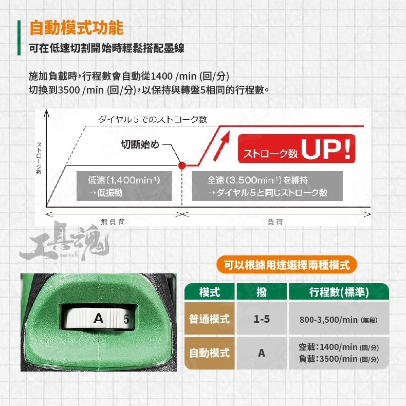 自動模式:1,400-3,500/min