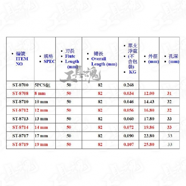 【ST-8700】8mm、10mm、12mm、13mm、14mm 各一支