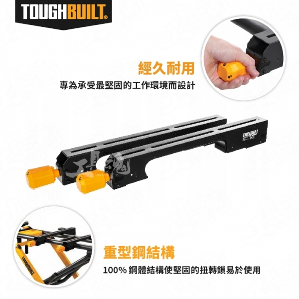 實用方便 - 將工具支架連接到工地上的多條鋸子上,並輕鬆地在 ToughBuilt Miter 鋸架上更換它們,以進行手頭的任務。