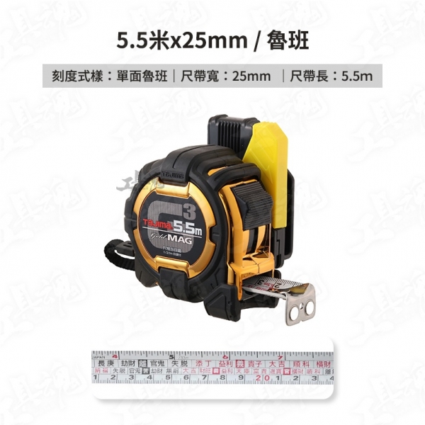 【G3捲尺5.5米 x 25mm 魯班】#附安全扣/磁鐵
