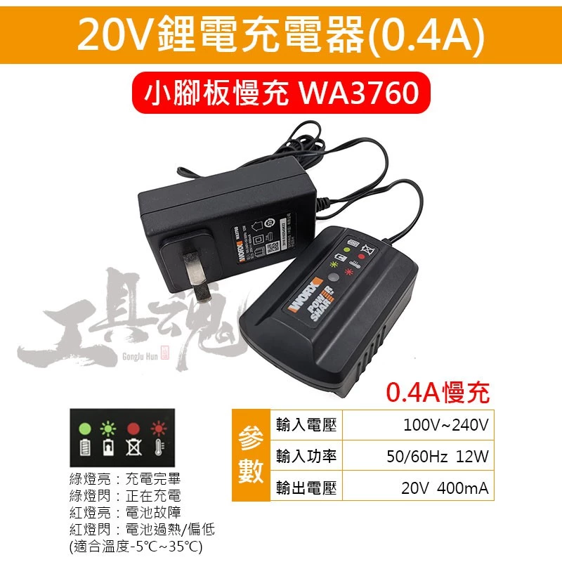 品名:20V鋰電充電器 (0.4A)