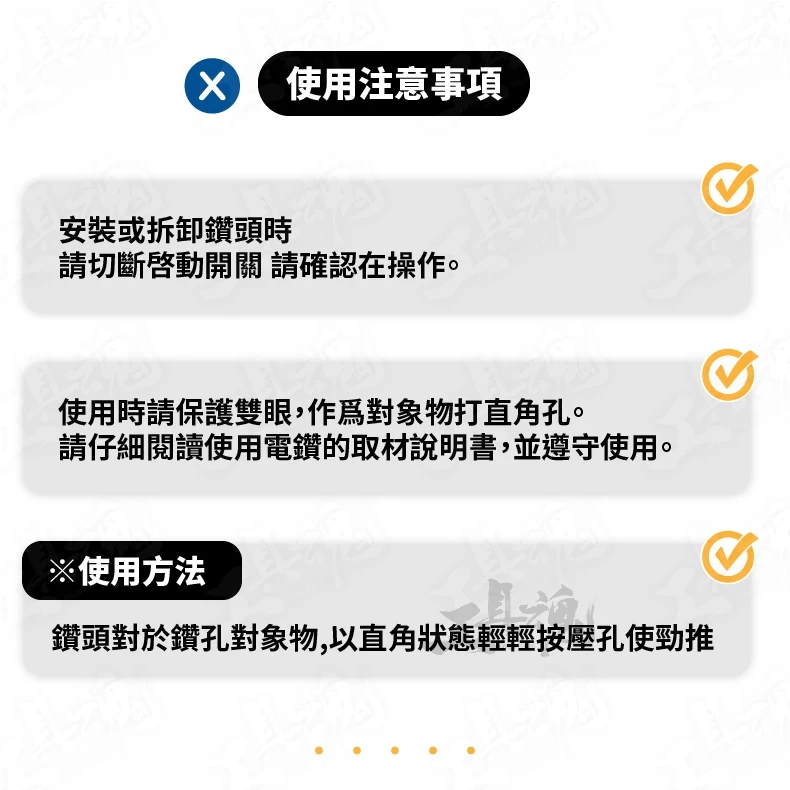 ◆ 安裝或拆卸鑽頭時請切斷啓動開關 請確認在操作。