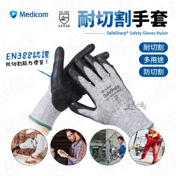 麥迪康- 耐切割手套 EN388 多用途 安全手套 防滑手套 止滑手套 Medicom