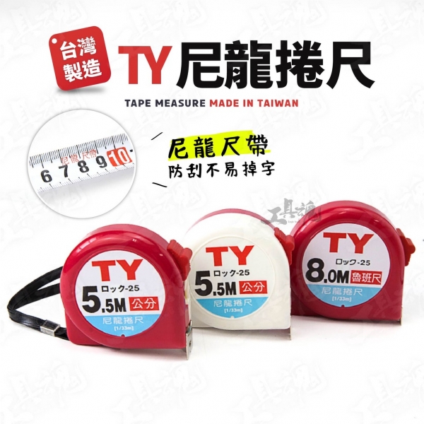 TY- |台灣製造| TY 尼龍捲尺 捲尺 公分 台尺 魯班 文公尺 5.5m 8.0m MIT