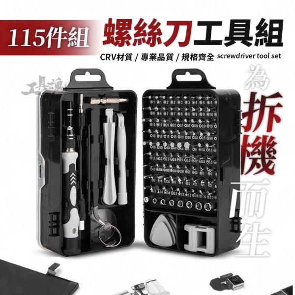 螺絲刀套工具組 115合一套組 精密維修工具 螺絲起子組 磁吸設計 萬向軟管 螺絲刀套裝