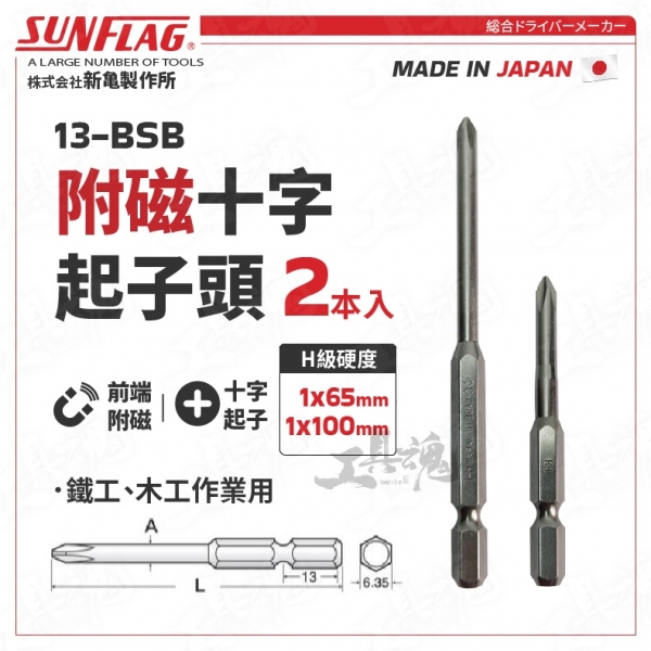 新龜/SUNFLAG- 附磁十字起子頭 13-BSB 1x100 1x65 十字 細柄 日本 新龜