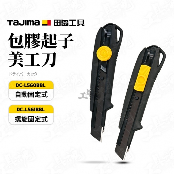 田島/TAJIMA- 包膠起子美工刀 美工刀 先端燒爪 黑刃 替刃收納 DC-L560BBL DC-