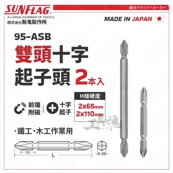 新龜- 雙頭十字起子頭 2x65 2x110 95-ASB 十字 日本 新龜 SUNFLAG 兩頭