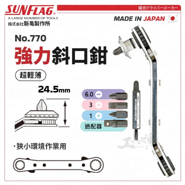 新龜- 強力斜口鉗 No.770 超薄型 棘輪 起子扳手 日本 新龜 SUNFLAG 板手 螺絲起