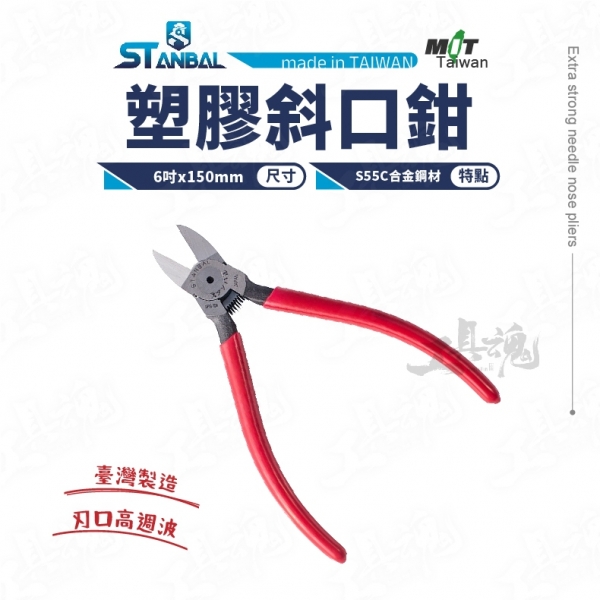 史丹堡- 塑膠斜口鉗 150mm 台灣製 史丹堡 ST-SPG-106 斜口鉗 6吋 省力 切斷 鉗