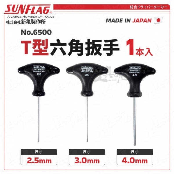 新龜- T型六角扳手 No.6500 2.5mm 3mm 4mm 日本 新龜 SUNFLAG 六