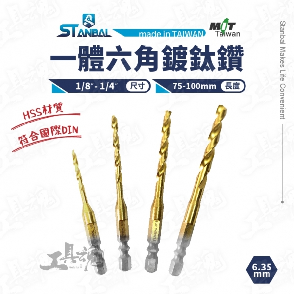 史丹堡- 【單支】一體泰鑽鍍鈦鑽 1/8
