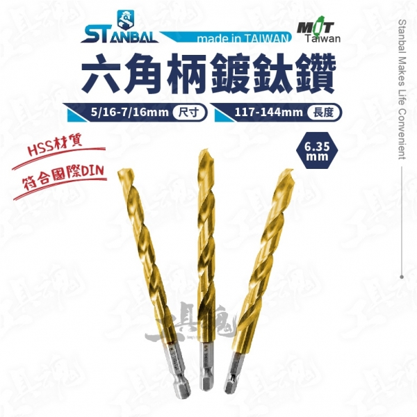 史丹堡- 【單支】六角柄鍍鈦鑽 5/16 3/8 7/16 台灣製 史丹堡 六角頭 M2 高速鋼 H
