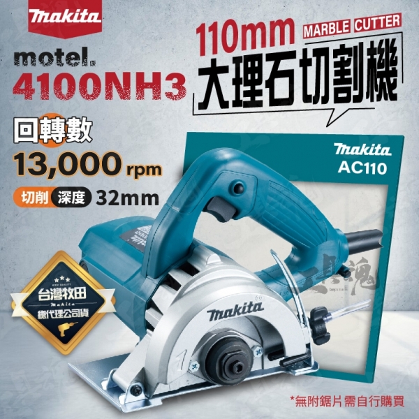 牧田- 電動切石機110mm 4100NH3Z 圓鋸機 切斷機 4吋 大理石 磁磚 水泥磚牆 M