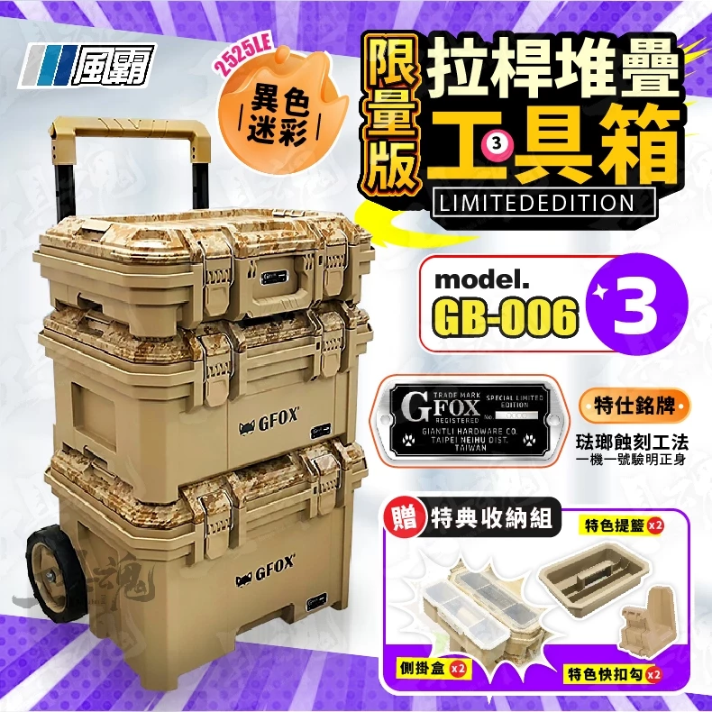 查看更多GB-006-3 2025LE 拉桿堆疊工具箱 限量異色版 GFOX 3件組 工具盒 收納箱 工具推