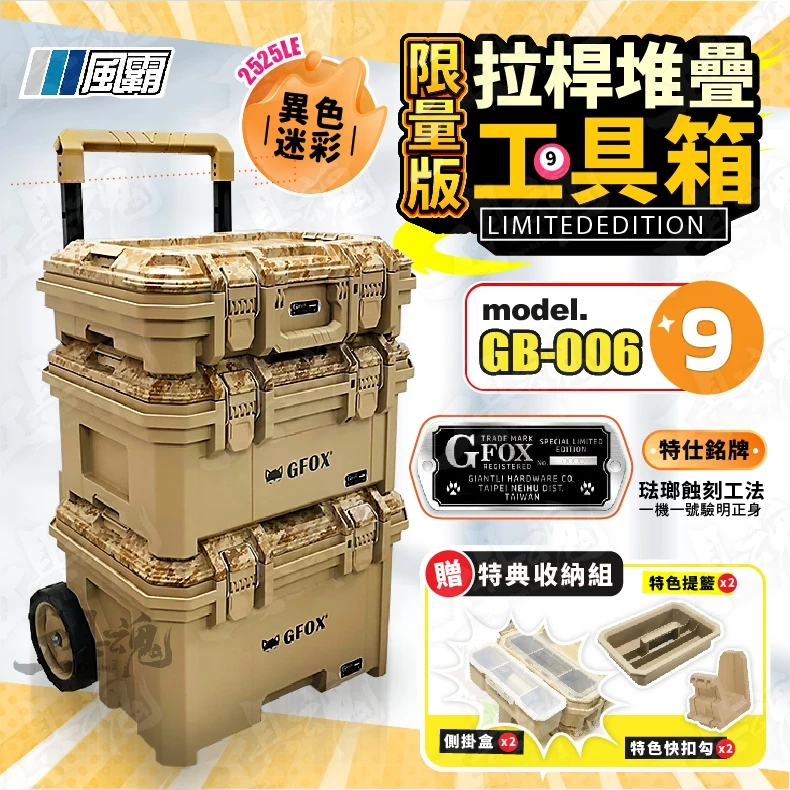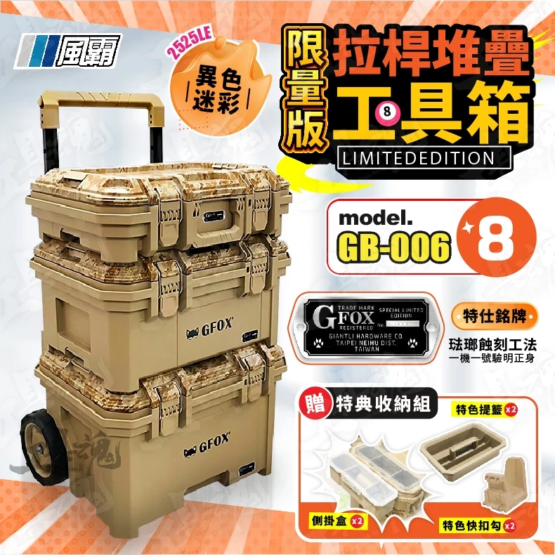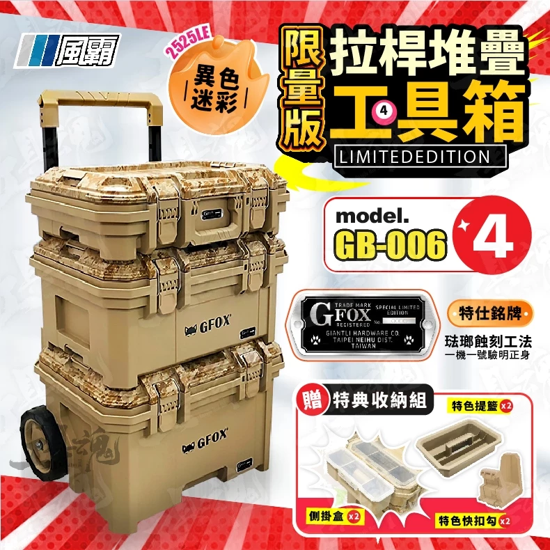 查看更多GB-006-4 2025LE 風霸工具箱 限量 異色版 3件套 工具盒 收納箱 迷彩 工具推車 收