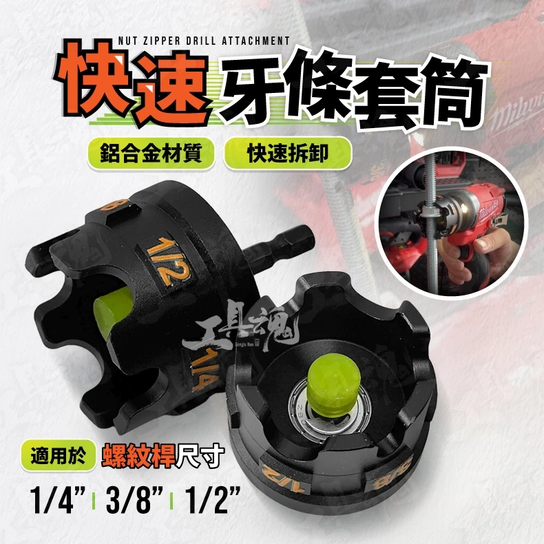 查看更多快速牙條套筒 鋁合金 快速拆卸 螺紋桿 1/4" 3/8" 1/2" 牙條套筒 扳手 拆卸 手工具