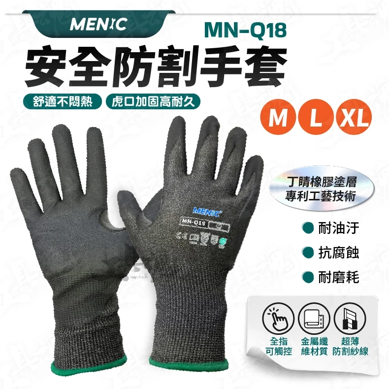 查看更多美尼克- 安全防割手套 MENIC M/L/XL 防割 耐磨 耐油汙 防刀割 MN-Q18 防撞 工