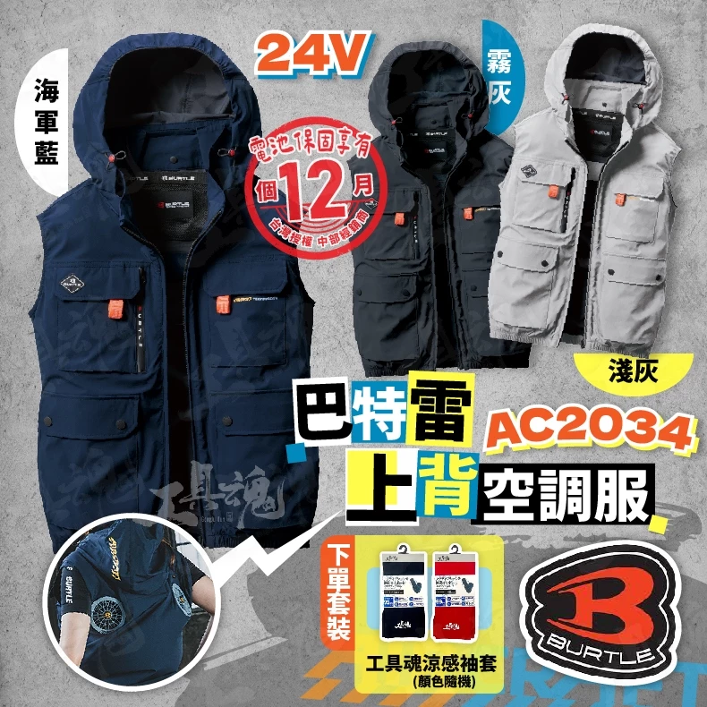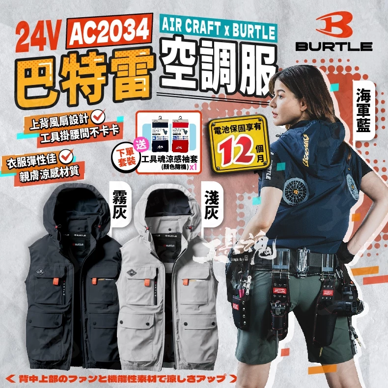 查看更多巴特雷 AC2034 上背涼感空調服 可拆帽 無袖背心 24V 防撥水 抗UV BURTLE 空調衣