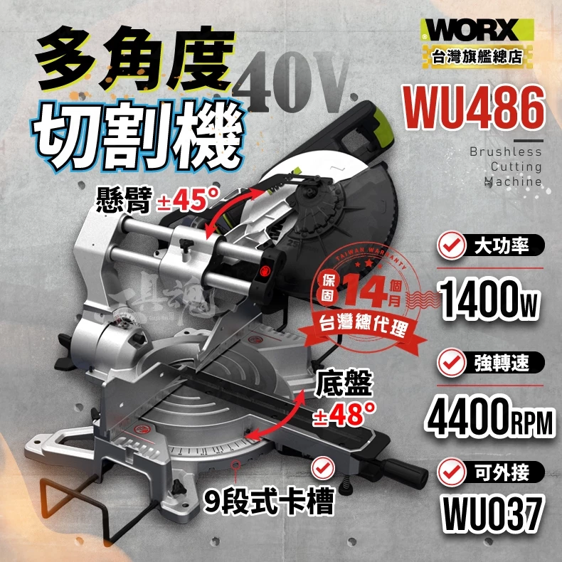 查看更多威克士- WU486 多角度切割機 40V 鋰電無刷 斜切鋸 軌道鋸 切割機 切台 鋸台 wu486