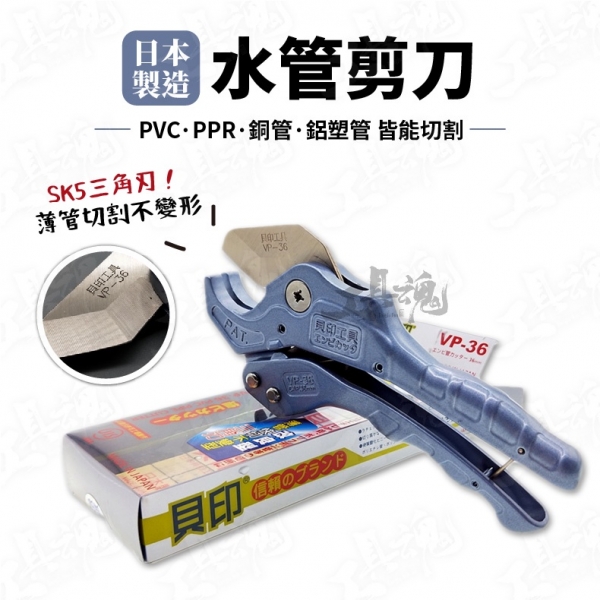 日本貝印 水管剪刀 日本製 VP-36 PVC 36mm PPR管 SK5三角刃 水管剪 剪刀 切剪