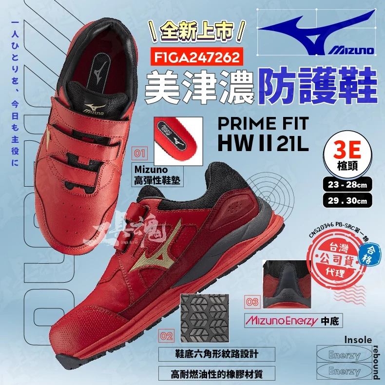 查看更多美津濃- MIZUNO 防護鞋 F1GA247262 PRIME FIT HWⅡ21L 寬楦 安全
