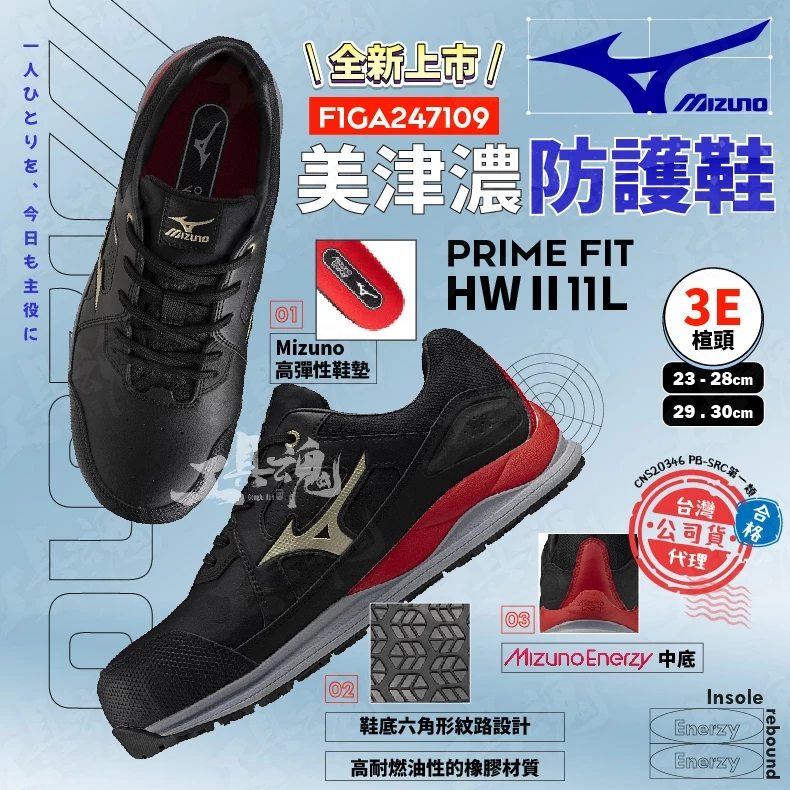 查看更多美津濃- MIZUNO 防護鞋 F1GA247109 PRIME FIT HWⅡ11L 寬楦 安全