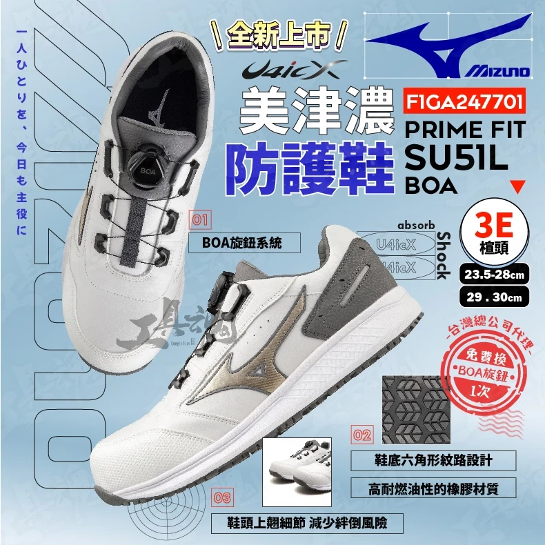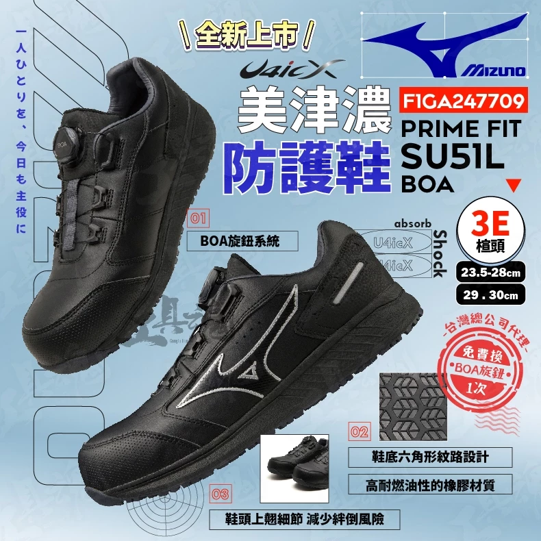 美津濃- MIZUNO 防護鞋 F1GA247709 PRIME FIT SU51L BOA 工作鞋