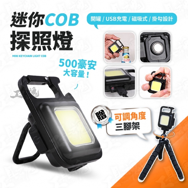多功能 迷你探照燈 COB 鑰匙扣 USB充電 可調光 露營燈 工作燈 照明燈 高亮度 登山扣 開罐