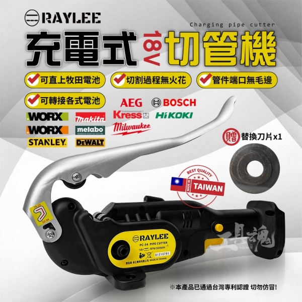 銳立- 台灣製 銳立 PC-34 18V 充電式 無火花 切管機 切斷機 切斷工具 Raylee 白
