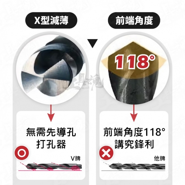 ◇尖端不同角度不規則螺旋,更好排出切屑