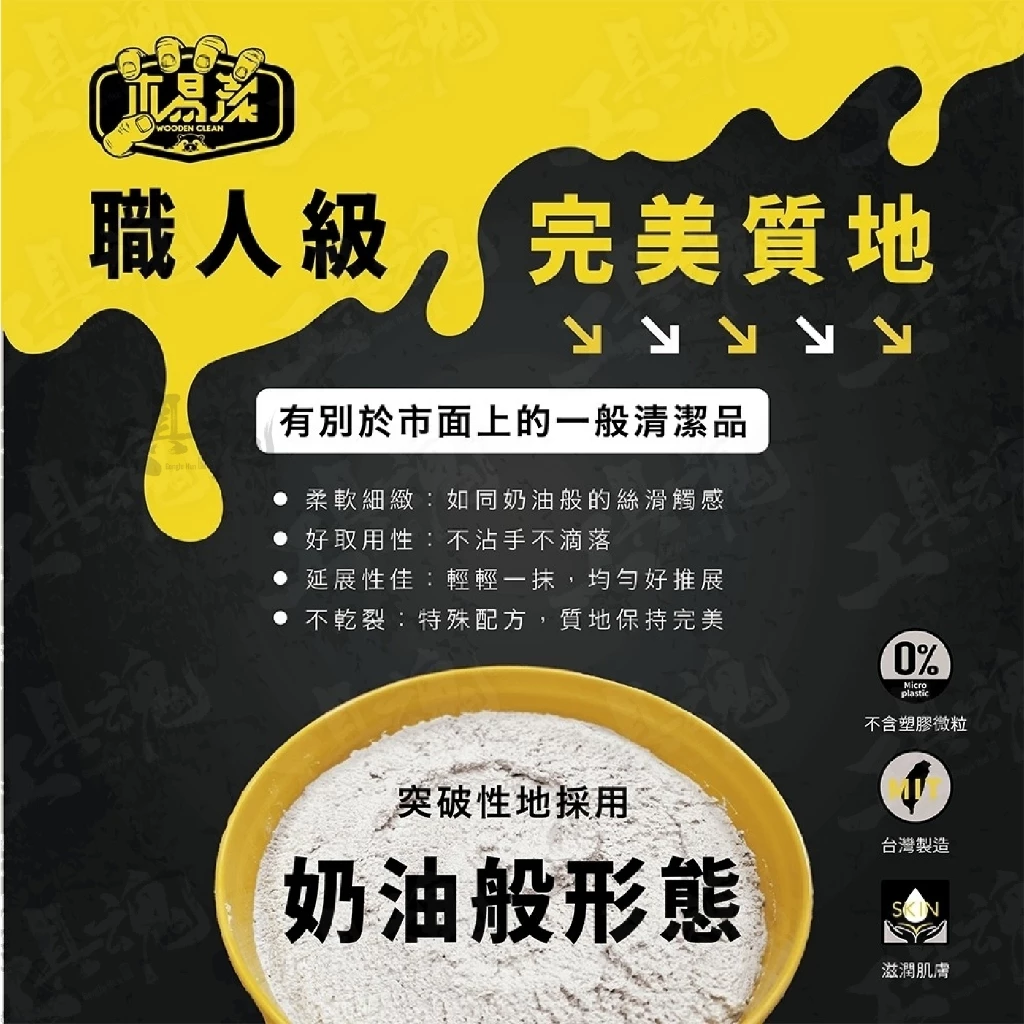 採用百分之百純天然木材加工研磨製成,細小如粉的纖維有效深入手部紋路隙縫吸附油污,固定粒徑大小洗手更舒服,還能達到最好的清潔效果,自然成分 溫和潔淨。