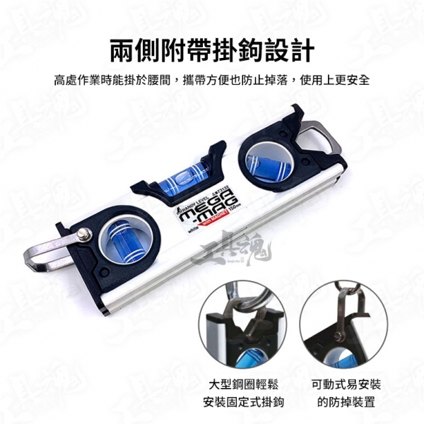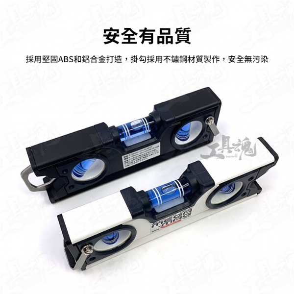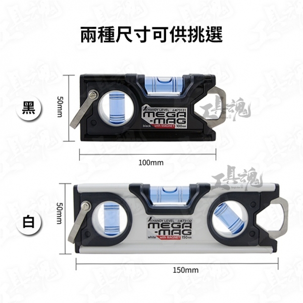 品牌:SHINWA 鶴龜 品名:強磁水平尺 尺寸選擇:100mm (總長寬高110*30*50mm) / 150mm (總長寬高160*30*50mm) 精度:±1.0mm/m=0.0573°以內 感度:0.35mm/m=0.0201° 淨重:100mm (130g) / 150mm (150g)