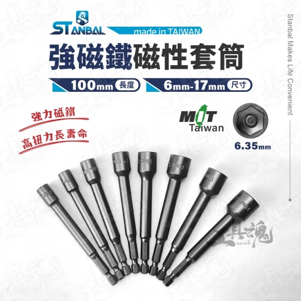 史丹堡- 【單支】磁性套筒 6-14mm 100mm 台灣製 史丹堡 強力磁鐵 鉻釩鋼 6.35mm