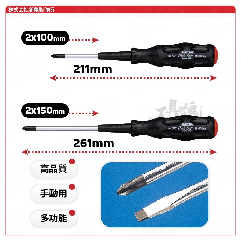 新龜/SUNFLAG- 止滑貫通起子 No.888 一字 6x100mm 6x150mm 日本 可磁