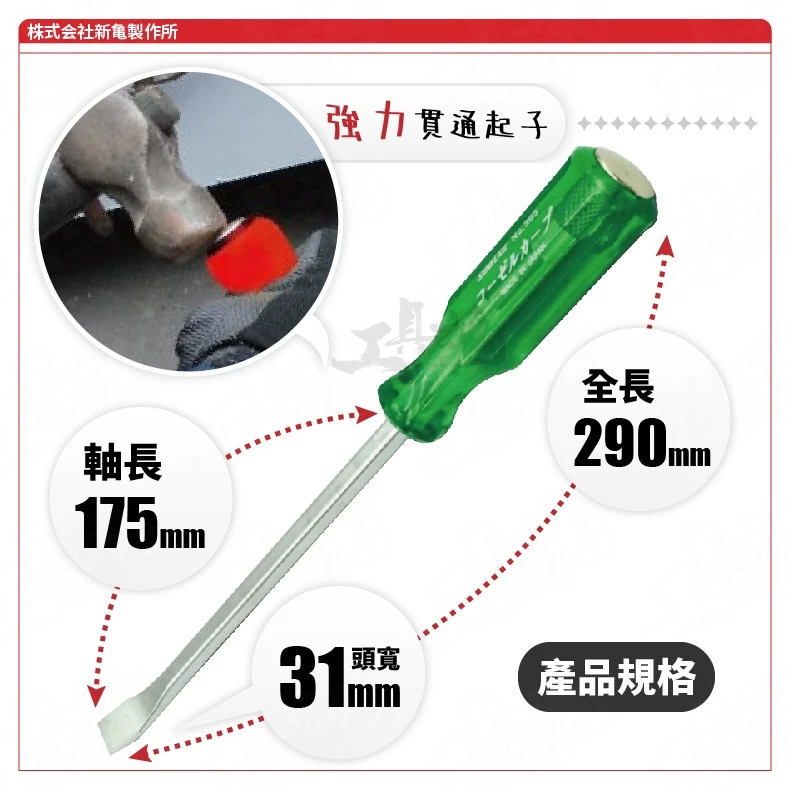 新龜/SUNFLAG- No.366 強力貫通起子 可敲擊 強力貫通平斜起子 敲擊起子 平直起子 日
