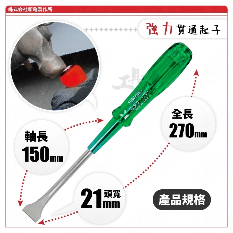 新龜/SUNFLAG- No.366 強力貫通起子 可敲擊 強力貫通平斜起子 敲擊起子 平直起子 日