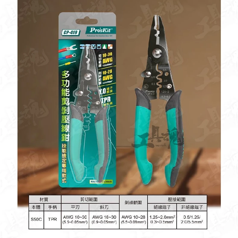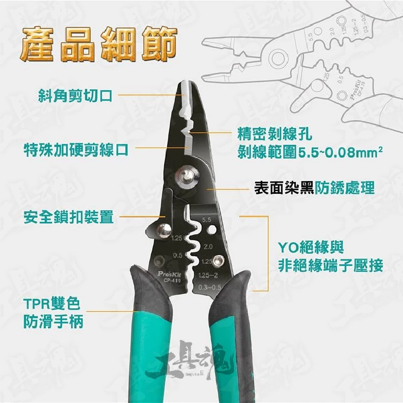 多功能設計可適用於剪線、剝線、壓線三合一的功能。